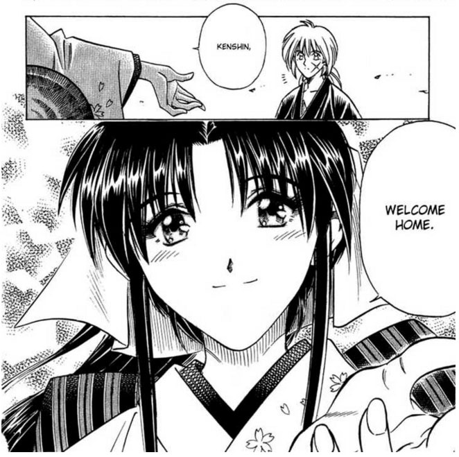 And so Kenshin started living at her dojo. This man who was once a murderer, who took to wandering around the country with no place to stay, finally had a place he could call home.