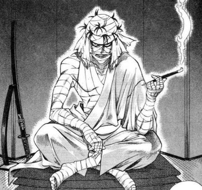 Known for his cross-shaped scar and god-like speed, he murdered people left and right during the war, all in the name of creating a new and more peaceful age in Japan.