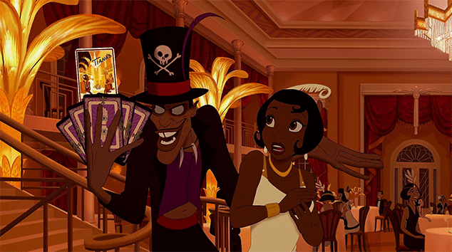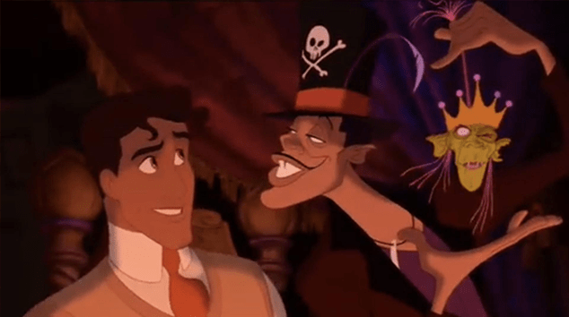 Heck he only finally interacts with her at the end… when she beats him. That’s the problem when there’s only so little time to tell the story. Because they need to develop the romance between Tiana and Naveen and at the same time have moments where Dr. Facilier interacts with either of them, and that’s tough.